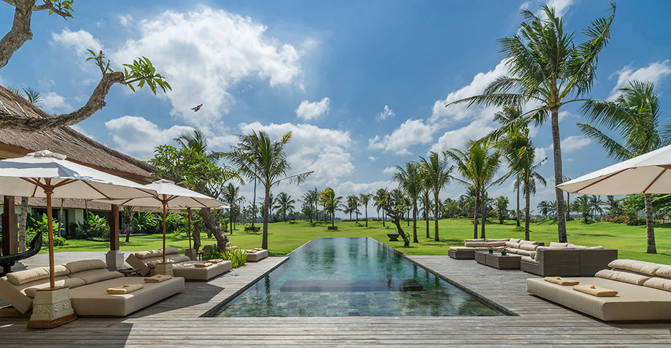 For romantic wedding parties, extended family gatherings and groups of well-heeled friends, the Kaba Kaba Estate is peerless. This extraordinary no-expenses-spared eight-bedroom villa rises on royal land on the edge of the prosperous village of Kaba Kaba in Bali’s fertile Tabanan regency, just 10 minutes from the beaches of Canggu. The setting is spectacular – three acres of garden extending into a sea of rice terraces that stretch to the volcano-dotted horizon. The interiors are equally impressive, hosting museum-quality antiques, paintings and objets d’art that reveal the owners’ passion for Asian culture and contemporary art.