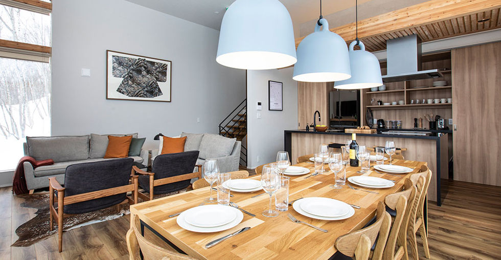 The intelligent layout is very spacious and perfect for families, accommodating up to eight guests within its three bedrooms. Bring along the kids for a ski adventure, and they may refuse to leave once they see the bunk bedroom for four. Though the outdoors beckon, hours can be spent in front of a canvas or with a sketchbook in hand, gazing at the fairy-tale snow-covered forest outside.