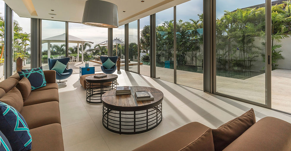 Steel, glass and timber form the ultramodern design of this slick four-bedroom villa overlooking the tranquil Natai Beach, just half an hour's drive north of Phuket airport.