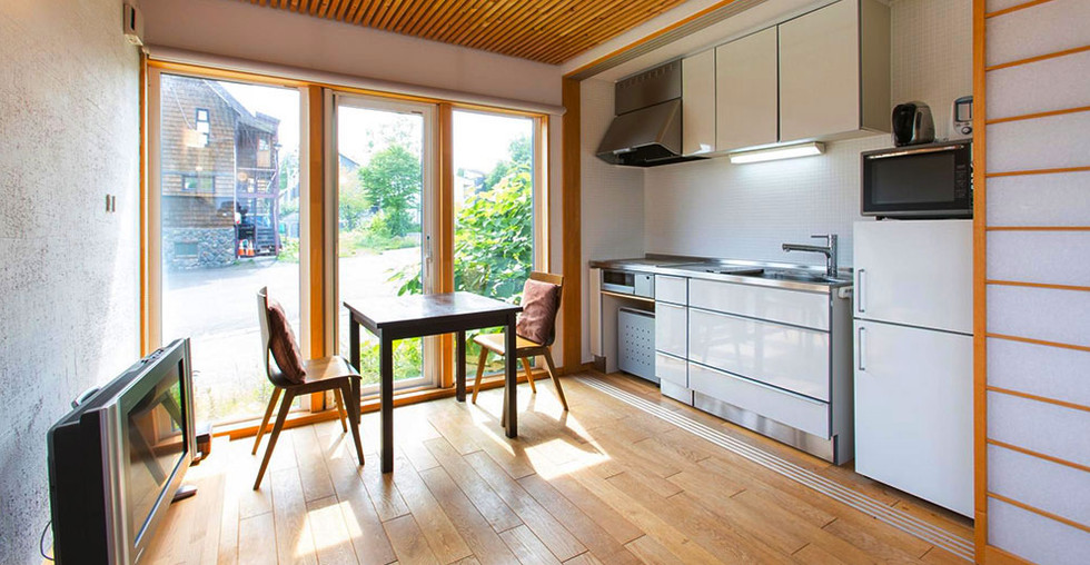 Fitted with a large bathroom which has a shower and a bathtub – fantastic for soaking those tired muscles after a long day outdoors – Apartment Sekka Ni 1 is also furnished with a well-equipped kitchenette which can be closed off from the lounge with a sliding partition.